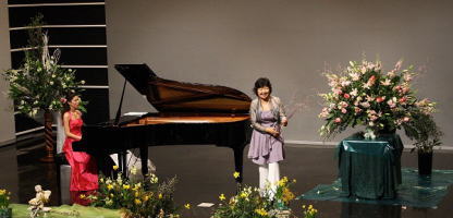 花とピアノのコンサートをさいたま市北区プラザノースで開催。 |