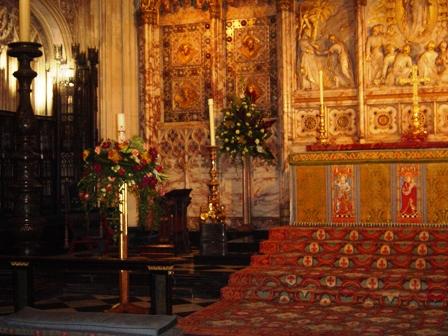| 創立25周年記念イベントの一つ、「イギリス花の旅」に参加した方たちで、このイベントにふさわしいイギリスの旅と活けこみを体験していただけました。“ウィンザー城”はイギリスのガイドブックに出てくるお城です。現在でも使われているヨーロッパで一番大きなお城です。ここの教会に活ける日がきました。 「イギリスの最高峰にあるこの建物に“イングリッシュクラシック”を思い切り活けて欲しい…」これが私の願いでした。そしてこの日それは着々と成功への道を歩んでいました。長い旅の疲れも見せず、メンバー全員の張り切った笑顔は、久しぶりに晴れ上がったイギリスの青空と同じくらい晴れやかなものでした。 ここはイギリス国家にとって重要な建物なのでセキュリティーはとても厳密です。皆の表情から重要文化財以上の場所にこれから花を活けるのだという緊張感が伝わってきました。下準備も整い、時間内に活け終えることができるだろうかと気にしていたことが嘘のようにスムースに運び、予定の時間まで一時間以上も余裕がありました。この頃になると、メンバーの緊張感は段々と心地よい優越感に変わっていった気がします。 観光客の視線を背に受けながら活けるのも、めったに体験できることではないでしょう。やはり皆、天井の高さに惑いながらも、あまりの広さに段々と気持ちが広くなっていくのを感じました。そして皆さんの最後の言葉が、“楽しかったです。活けることを充分満喫できました。”でした。 よかった。この言葉は私にとって最高のプレゼントです。遠く離れている日本とイギリスの歴史の架け橋にもなれたのです。 その後この教会の司教様のお宅で、本場のティーをご馳走になりました。司教様の奥様が入れてくださったお茶は、きっとメンバーの方たちの一生の宝となり、いつまでも心のどこかにしまって置ける体験となったと思います。 この旅行記は次回に続きます。 写真を撮ることが許されませんでしたが、教会管理職の方が夜、私たちのために撮ってくれた写真をここに掲載いたします。 |