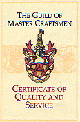 | ▲ザ・ギルド オブ マスタークラフツマン会員認定証 17世紀、産業革命時代のギルド制度が今もイギリスに存続し、、1999年タエコマーヴェリーはギルドの会員であることを認められた。 |