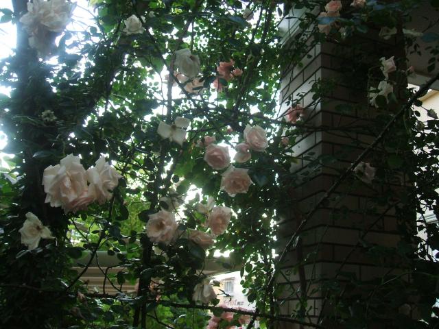 | “ 花のある風景 ” 今年6月、ベランダまで這い上がり咲き誇ったバラ達です。 いつの間にか約60種に増えていました。 家がバラで覆われることを夢見て奮闘中です。 お気に入りは何といってもイングリッシュローズ。さすがイギリスですね♪ 山形教室 綿貫 裕子 |